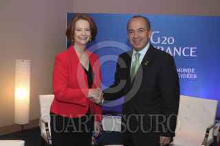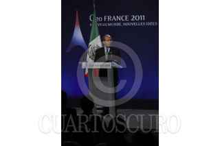CANNES, FRANCIA, 04NOVIEMBRE2011.- El presidente Felipe Calderón Hinojosa en conferencia de prensa al termino de su participación en la cumbre de lideres del G20. FOTO: FRANCISCO SANTOS/CUARTOSCURO.COM