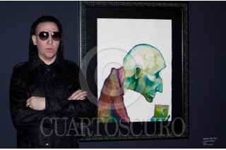 MÉXICO, D.F. 04NOVIEMBRE2011.- Marilyn Manson, realizó ayer por la noche un recorrido por la exposición The Path to Misery en donde presenta su muestra pictórica compuesta de 30 piezas de acuarela que se expone en el museo de San Ildenfonso. FOTO: RODOLFO ANGULO/CUARTOSCURO.COM