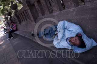 MÉXICO, D.F., 05NOVIEMBRE2011.- Un joven duerme en una banca sobre avenida de la Reforma. FOTO: ISAAC ESQUIVEL/CUARTOSCURO.COM