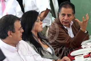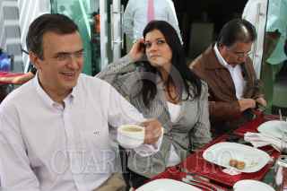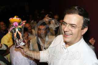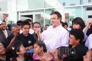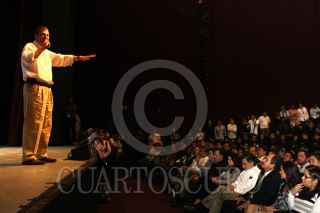 SAN ANDRÉS CHOLULA, PUEBLA, 05NOVIEMBRE2011.- Marcelo Ebrard Casaubon, Jefe de Gobierno del DF, encabezó el foro "Diálogos por la equidad en Puebla" que se llevó a cabo en el teatro del Complejo Cultural Universitario. Al finalizar el mandatario capitalino recibió varias demostraciones de afecto de parte de los asistentes. FOTO: FRANCISCO GUASCO/CUARTOSCURO.COM