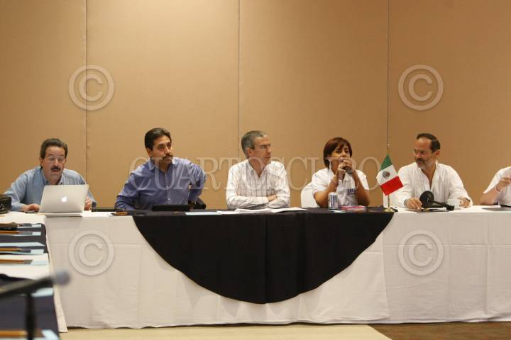 MICHOACÁN, MICHOACÁN, 05NOVIEMBRE2011.- Juan Molinar Horcasitas, secretario de Acción de Gobierno del blanquiazul, Ruben Camarillo, senador panista, José González Morfín, presidente de la mesa directiva del Senado, Luisa María Calderón Hinojosa, candidata panista a la gubernatura, y Gustavo Madero, en una reunión del Comité Ejecutivo Nacional del PAN, con miras a la elección del próximo domingo. FOTO: CUARTOSCURO.COM