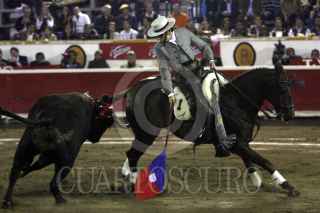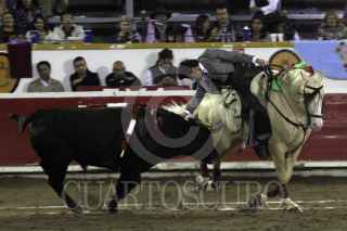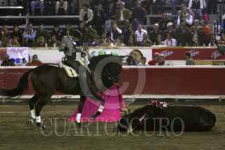 PUEBLA, PUEBLA, 05NOVIEMBRE2011.- El reconocido rejoneador portugués, Diego Ventura, salió por la puerta grande tras ser el vencedor de la fiesta brava celebrada en la plaza de toros "El Relicario", esto tras cortar una oreja a Portugués de 503 kilogramos, y otro apéndice a Cumpleañero de 505 kilográmos, astados de la ganadería Julio Delgado. FOTO: FRANCISCO GUASCO/CUARTOSCURO.COM