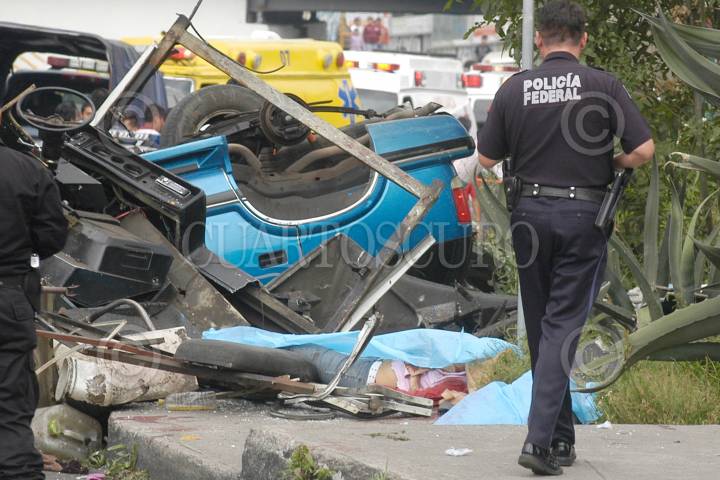 MÉXICO, D.F., 05NOVIEMBRE2011.- Seis personas muertas, 19 trasladadas y 10 atendidas en el lugar, fue el resultado del choque del microbús de la ruta 1 que corría de la caseta a metro Copilco en el entronque de la Autopista México Cuernavaca-calzada de Tlalpan, en la colonia San Pedro Mártir. Al lugar arribaron ambulancias de distintas corporaciones para atender y trasladar a los lesionados y peritos de la Delegación Tlalpan para tomar conocimiento de los hechos y levantar a los cadáveres. FOTO: LUIS CARBAYO/CUARTOSCURO.COM