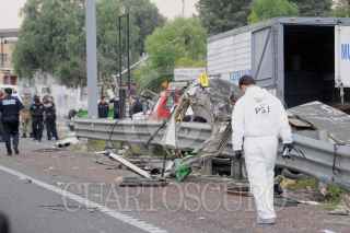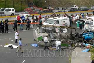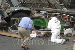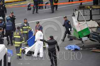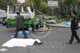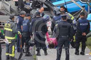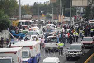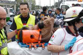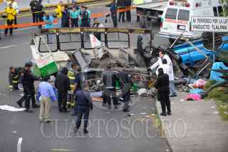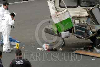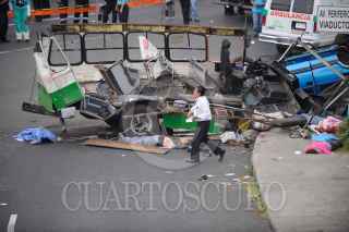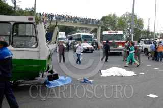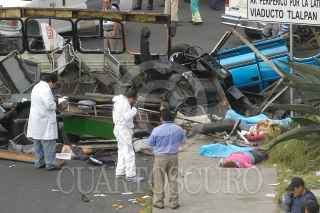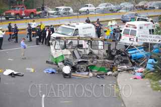 MÉXICO, D.F., 05NOVIEMBRE2011.- Seis personas muertas, 19 trasladadas y 10 atendidas en el lugar, fue el resultado del choque del microbús de la ruta 1 que corría de la caseta a metro Copilco en el entronque de la Autopista México Cuernavaca-calzada de Tlalpan, en la colonia San Pedro Mártir. Al lugar arribaron ambulancias de distintas corporaciones para atender y trasladar a los lesionados y peritos de la Delegación Tlalpan para tomar conocimiento de los hechos y levantar a los cadáveres. FOTO: LUIS CARBAYO/CUARTOSCURO.COM