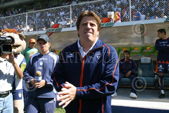 PACHUCA, HIDALGO 28NOVIEMBRE2004.- Andrés Chitiva de los Tuzos del Pachuca disputa un balón con un jugardor de los Rayados del Monterrey en el partido de vuelta de los Cuartos de Final. FOTO: Nelly Salas/CUARTOSCURO.COM