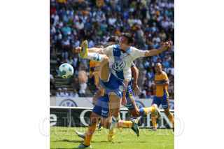 PUEBLA, PUEBLA, 06NOVIEMBRE2011.- El Puebla de la Franja sufrió una derrota en casa el estadio Cuauhtémoc, tras recibir un gol por los Tigres de la UANL, durante el juego de la fecha 17 del torneo apertura 2011. FOTO: FRANCISCO GUASCO/CUARTOSCURO.COM