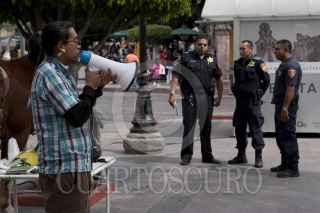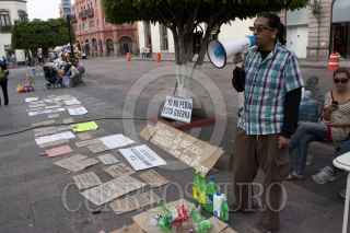 QUERÉTARO, QUERÉTARO, 07NOVIEMBRE2011.- Integrantes del movimiento Occupy Querétaro, mantienen sus protestas contras la políticas neoliberales, a la vez que informan a las personas sobre la forma sustentable del planeta. El movimiento es parte de la movilización de Los Indignados convocada el mes pasado desde EUA y España. FOTO: DEMIAN CHÁVEZ/CUARTOSCURO.COM