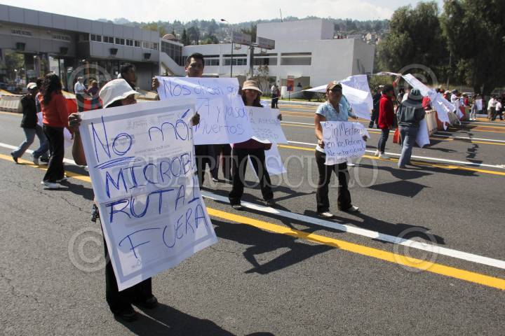 MÉXICO, D.F., 08NOVIEMBRE2011.- Habitantes de San Pedro Martir se manifestaron bloqueando por más de dos horas la caseta México-Cuernavaca. Los inconformes exigen que sean retirados los microbuses de la ruta 1 debido a los constantes accidentes viales. Al lugar asistió el titular de Setravi, Armando Quintero, para dialogar con los vecinos. FOTO: SAÚL LÓPEZ/CUARTOSCURO.COM