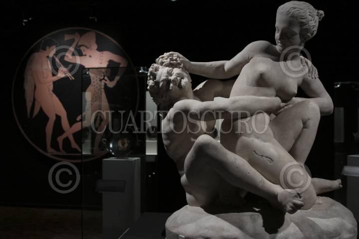 MÉXICO, D.F., 09NOVIEMBRE2011.- En el Museo de Antropología e Historia permanecerá hasta el 22 de enero del 2012 la exposición "Cuerpo y belleza en la Grecia Antigua". Aquí la cabeza de mármol del dramaturgo Sófocles. FOTO: IVÁN STEPHENS/CUARTOSCURO.COM