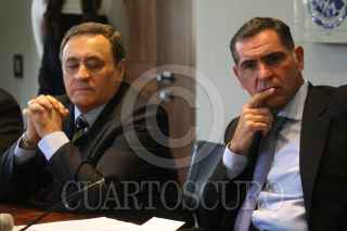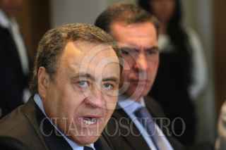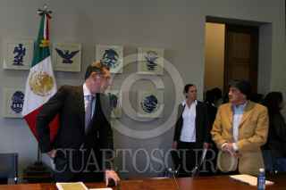 OAXACA, OAXACA, 11NOVIEMBRE2011.- Gabino Cué, gobernador del estado acompañado de Jesús Martínez Álvarez, secretario general de Gobierno (Segego) encabezaron la "Instalación de la Comisión Ejecutiva para la Atención de los Chimalapas", acto realizado en el Salón de los Escudos del Palacio de Gobierno al que asistieron los delegados Federales de la Reforma Agraria, Sagarpa, PGR, entro otros, no así representantes de San Miguel Chimalapa. FOTO: ARTURO PÉREZ ALFONSO/CUARTOSCURO.COM