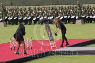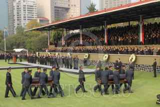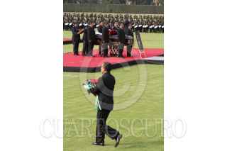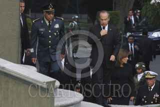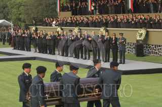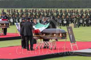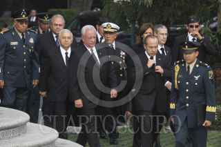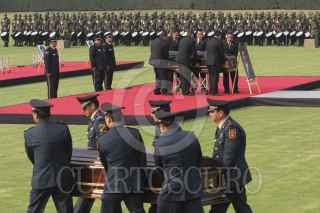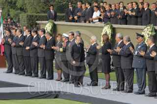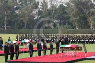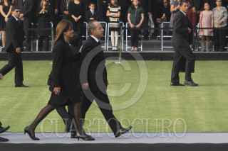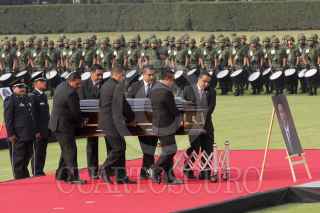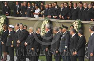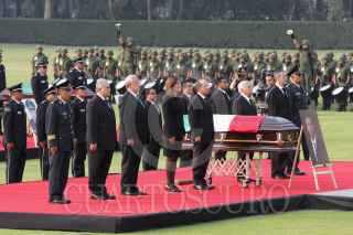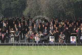 MÉXICO, D.F., 12NOVIEMBRE2011.- Felipe Calderón Hinojosa, presidente de México acompañado de su esposa Margarita Zavala, coordinadores del Senado de la República, Cámara de Diputados, secretarios de estado, gobernadores, funcionarios y familiares de José Francisco Blake Mora, Secretario de Gobernación y a sus siete asistentes, les rindieron un homenaje de estado en el campo militar Marte después que perdieran la vida el día de ayer al desplomarse el helicóptero en el que viajaban en la zona montañosa de Chalco. FOTO: SAÚL LÓPEZ/CUARTOSCURO.COM