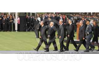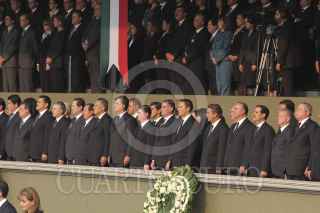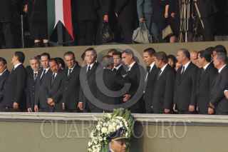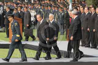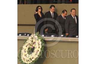 MÉXICO, D.F., 12NOVIEMBRE2011.-Rosalinda Bueso, Marcelo Ebrard, Leonel Godoy y Jesus Zambrano asistieron al homenaje de estado, en el campo militar Marte en memoria de Francisco Blake Mora, Secretario de Gobernación. FOTO: SAÚL LÓPEZ/CUARTOSCURO.COM