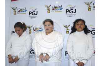 MÉXICO, D.F., 13NOVIEMBRE2011.- Tres mujeres fueron presentadas ante los medios de comunicación en las instalaciones de la Procuraduria Capitalino por su presunta participación en el delito de cobro de al menos 200 extorsiones mismas que eran comandadas desde el reclusorio de Santa Martha. FOTO: CUARTOSCURO.COM