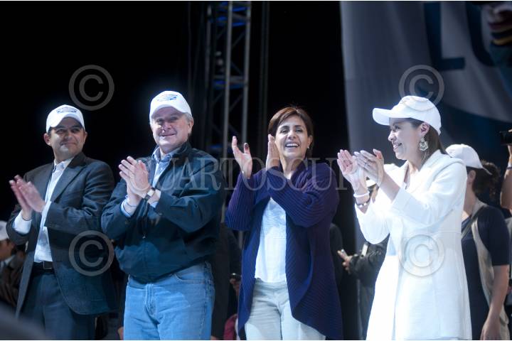 MORELIA, MICHOACAN, 13NOVIEMBRE2011.- La candidata del Partido Acción Nacional y Nueva Alianza, Luisa María Calderón Hinojosa, y la coordinadora de la Asamblea Legislativa en el D.F., Mariana Gómez del Campo acudieron a la Plaza del Caballito a festejar lo que llamó "Victoria Histórica del Panismo" en el marco de las elecciones por la gubernatura del estado. FOTO: FRANCISCO RODRÍGUEZ/CUARTOSCURO.COM