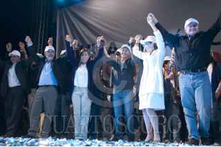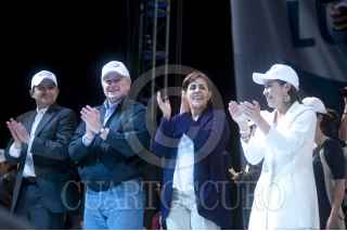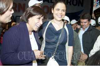 MORELIA, MICHOACAN, 13NOVIEMBRE2011.- La candidata del Partido Acción Nacional y Nueva Alianza, Luisa María Calderón Hinojosa, y la coordinadora de la Asamblea Legislativa en el D.F., Mariana Gómez del Campo acudieron a la Plaza del Caballito a festejar lo que llamó "Victoria Histórica del Panismo" en el marco de las elecciones por la gubernatura del estado. FOTO: FRANCISCO RODRÍGUEZ/CUARTOSCURO.COM