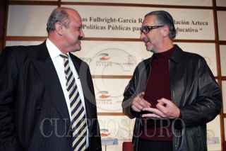 México, D.F., 30NOVIEMBRE2004.- Reyes Tamez Guerra, secretario de Educación y Ricardo Salinas Pliego, presidente del grupo Salinas, durante la establecimiento de las becas Fulbright-Gracía Robles. FOTO: Moisés Pablo/CUARTOSCURO.COM