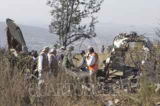 MÉXICO, D.F., 16NOVIEMBRE2011.- La Secretaría de Comunicaciones y Transportes permitió a los representantes de los medios de comunicación recorrer el lugar donde cayó el helicóptero del secretario de Gobernación, Francisco Blake Mora y sus colaboradores el pasado viernes. Explicaron la forma en que el aparato chocó en el cerro Ayaqueme en el Valle de Chalco, en el estado de México, y describieron de qué manera se desplazó la aeronave al tocar tierra. Detallaron que al tener un primer contacto contra unos árboles, el Super Puma chocó contra el terreno del cerro a una altura de nueve mil pies sobre el nivel del mar y el impactó provocó que diera vueltas hasta quedar destruido y sus restos esparcidos a lo largo de 200 metros. FOTO: LUIS CARBAYO/CUARTOSCURO.COM