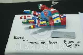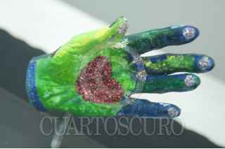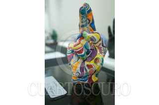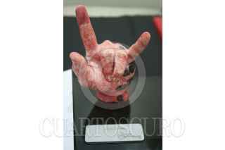 MÉXICO, D.F., 17NOVIEMBRE2011.- La noche de ayer se realizó en el Teatro Libanes, la presentación de la campaña "Chavos + sanos. Razones de peso para sumar esfuerzos" de la fundación Chespirito iap, que busca vincular a los sectores, privado, público y social para atender el problema de la obesidad y diabetes entre la población infantil utilizando la imagen del Chavo Animado. También se presentaron las replicas en yeso de las manos de celebridades que las decoraron y donaron para su venta, subasta y donación de las ganacias a la fundación de la cual, Marcela Gómez Fernandez es presidenta. En la imagen, la mano del actor, Bruno Bichir. FOTO: FRANCISCO RODRÍGUEZ/CUARTOSCURO.COM