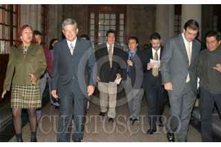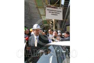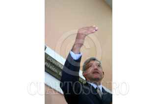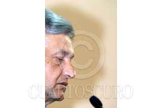 MEXICO, D.F. 01 DICIEMBRE 2004.- Andrés Manuel López Obrador, jefe de Gobierno capitalino, es cuestionado por la fuente acerca de la supuesta renuncia del secretario de Seguridad Pública del D.F. Marcelo Ebrard, al tèrmino de la ceremonia de inauguración de la planta de Asfalto. FOTO: Sandra Perdomo/CUARTOSCURO.COM