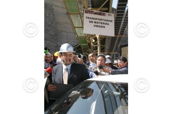 MEXICO, D.F. 01 DICIEMBRE 2004.- Andrés Manuel López Obrador, jefe de Gobierno capitalino, es cuestionado por la fuente acerca de la supuesta renuncia del secretario de Seguridad Pública del D.F. Marcelo Ebrard, al tèrmino de la ceremonia de inauguración de la planta de Asfalto. FOTO: Sandra Perdomo/CUARTOSCURO.COM