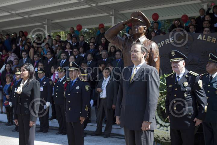 MÉXICO, D.F., 18NOVIEMBRE2011.- Marcelo Ebrard Casaubón, Jefe de Gobierno, entregó equipo a elementos de la Policía Bancaria e Industrial, en el marco de la celebración de su 70 aniversario de creación, en la explanada de la Ciudad Deportiva. FOTO: MOISÉS PABLO/CUARTOSCURO.COM