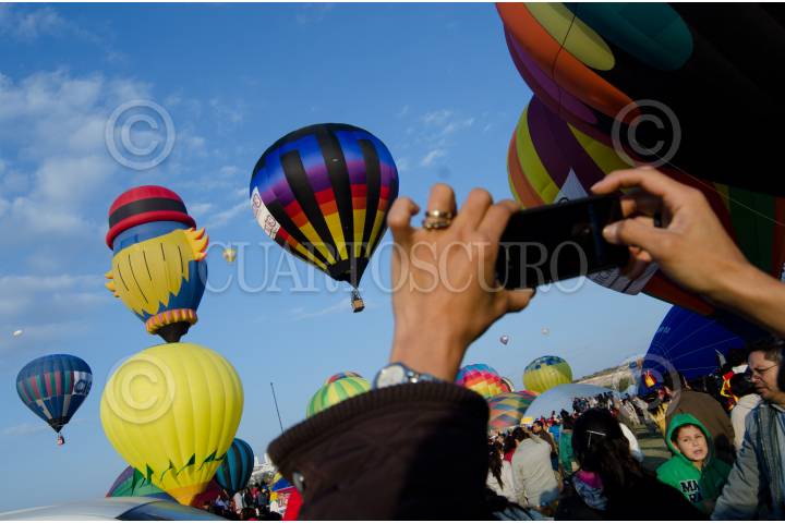LEÓN, GUANAJUATO, 20NOVIEMBRE2011.- Miles de personas se dieron cita en el Parque Metropolitano de esta ciudad para observar el ascenso de más de 200 globos aerostáticos que forman parte del X Festival Internacional del Globo. Según autoridades este día se rompió el record de asistencia. FOTO: MISAEL VALTIERRA/CUARTOSCURO.COM