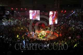 CULIACAN, SINALOA, 22NOVIEMBRE2011.- Ayer por la madrugada se presentó en el palenque de la feria ganadera el internacional grupo norteño, Los Tigres del Norte, tocando varios de sus exitos. Cabe mencionar que por hechos ocurridos el pasado domingo, donde fueron asesinados 3 sujetos dentro de los baños, se suspendió la venta de alcohol y se realizó un fuerte operativo dentro y fuera de la feria por elementos de la Policía Estatal y Ejército Mexicano; sin embargo esto no fue impedimento para que la gente asistiera a ver a los ídolos norteños, entre el público se encontraba el campeón mundial Julio Cesar Chavez JR. FOTO: RASHIDE FRÍAS/CUARTOSCURO.COM