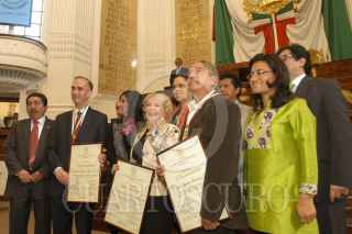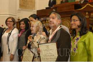 MÉXICO, D.F. 22NOVIEMBRE2011.- El escritor José Agustín, recibió la medalla al Medalla al Mérito en Artes, que entrega la Asamblea Legislativa del DF, en ceremonia solemne. FOTO: CUARTOSCURO.COM
