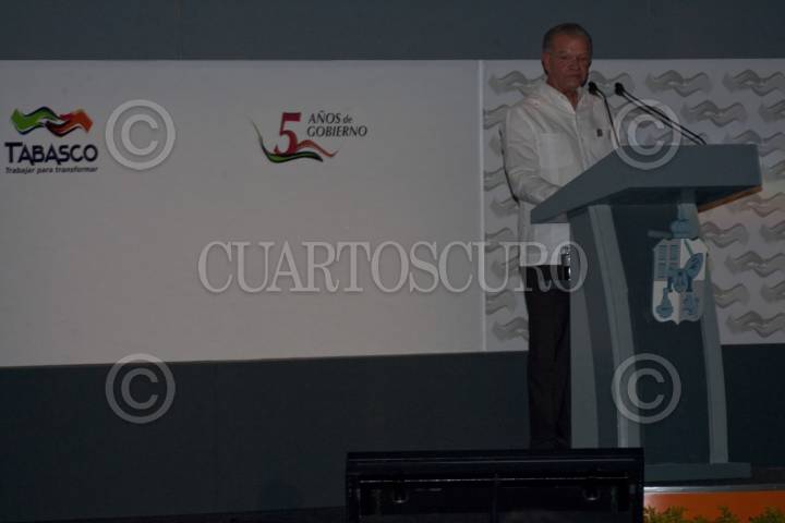 VILLAHERMOSA, TABASCO, 22NOVIEMBRE2011.- Ándres Granier Melo, gobernador de la entidad, Carlos Romero Deschamps, líder sindical de los petroleros, y Roberto Borge Ángulo, gobernador de Quintana Roo, previó a la presentación del V Informe de Gobierno del "Químico". FOTO; MARCO POLO GUZMÁN HERNÁNDEZ/CUARTOSCURO.COM