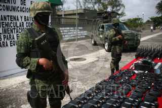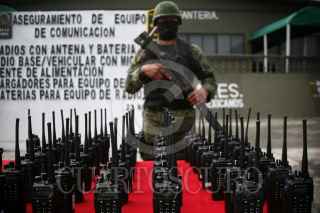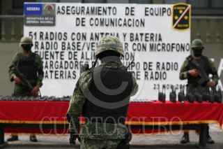 BOCADELRÍO, VERACRUZ, 23NOVIEMBRE2011.- Elementos del Ejército Mexicano acargo de la VI Región Militar presentaron este día un importante decomiso de equipo de radio-comunicación que incluye radios, amplificadores para vehículos, micrófonos, cargadores, antenas y baterías; esto durante un operativo ejecutado en la ciudad de Cuitlahuac en el marco de Veracruz Seguro. FOTO: FÉLIX MÁRQUEZ/CUARTOSCURO.COM