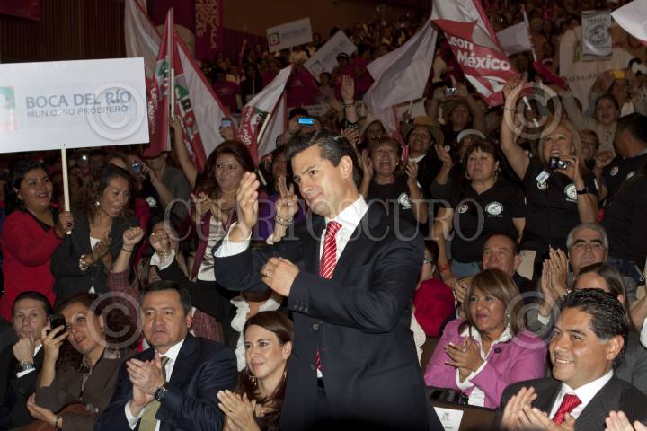 MÉXICO, D.F., 23NOVIEMBRE2011.- Enrique Peña Nieto, aspirante a la Presidencia de la República por el PRI, felicita a Diva Gastélum, quien tomo protestas como nueva dirigente de la Unión Nacional de Mujeres del PRI (UNMPRI), en una ceremonia realizada en el CEN priista. FOTO: MOISÉS PABLO/CUARTOSCURO.COM
