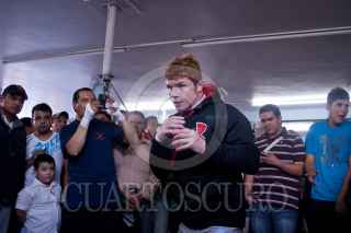 MÉXICO, D.F., 23NOVIEMBRE2011.- El peleador Saúl "El Canelo" Álvarez realizó un entrenamiento en el Gimnasio EL Nuevo Jordan, previo a su pelea contra el puertorriqueño Kermit Cintrón este sábado en la Monumental Plaza de Toros de la Ciudad de México. FOTO: ISAAC ESQUIVEL/CUARTOSCURO.COM