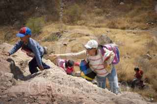 QUERÉTARO, QUERÉTARO, 23NOVIEMBREBRE2011.- Niños estudiantes de primaria, secundaria algunos acompañados de sus madres, hacen una travesía peligrosa a través de un acantilado en la colonia Colinas de Menchaca, donde no existe alumbrado público y que ha generado situaciones de inseguridad, como reportan los vecinos, no acude la policía. Recientemente se tiene la queja de la violación de una menor. FOTO: DEMIAN CHÁVEZ/CUARTOSCURO.COM