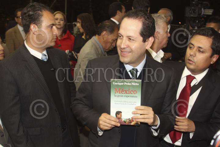 MÉXICO, D.F., 23NOVIEMBRE2011.- Guillermo Ortiz, platica con Enrique Peña Nieto, aspirante a la presidencia de la república, durante la presentación del libro del ex-mandatario mexiquense, titulado México la Gran Esperanza. FOTO: SAÚL LÓPEZ/CUARTOSCURO.COM