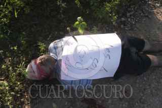 VILLAHERMOSA, TABASCO, 24NOVIEMBRE2011.- En el sector Petacas de la rancheria Pablo L. Sidar. fue encontrado sin vida un hombre de aproximadamente 35 años; el cuerpo se encontraba con los ojos vendados, manos atadas, con el tiro de gracia y una cartulina clavada en el pecho con un punso "Esto le va a pasar a los traidores y sapos". FOTO: MARCO POLO GUZMÁN HERNÁNDEZ/CUARTOSCURO.COM