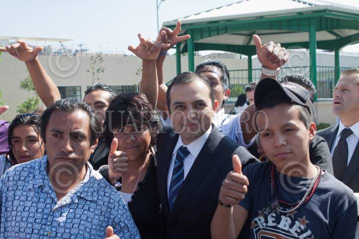 MÉXICO, D.F., 24NOVIEMBRE2011.- Ernesto Cordero, aspirante panista a la Presidencia de la República, encabezó un mitín con vecinos de la colonia Antigua Argentina en la delegación Miguel Hidalgo. En el evento el ex-secretario de Hacienda compartió parte de sus plataforma política "México Crece Seguro" con miras en su búsqueda por la candidatura de su partido, al finalizar convivió con los asistentes. FOTO: MOISÉS PABLO/CUARTOSCURO.COM