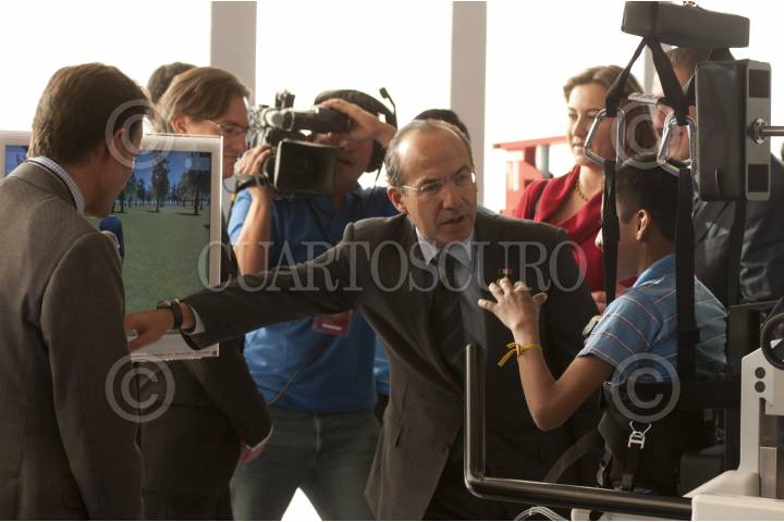 SAN ANDRÉS CHOLULA, PUEBLA, 24NOVIEMBRE2011.- La tarde de hoy el Presidente, Felipe Calderón HInojosa inauguró el Centro de Rehabilitación Teletón en el estado de Puebla, fue acompañado por el gobrenador del estado, Rafaél Moreno Valle. El propio presidente interrumpió su discurso inaugural para subir al templete a la primera familia que será atendida en el Centro. FOTO: FRANCISCO RODRÍGUEZ/CUARTOSCURO.COM