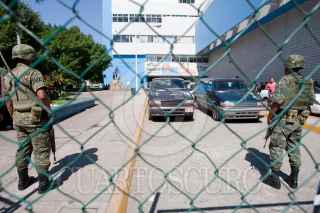 VILLAHERMOSA, TABASCO, 25NOVIEMBRE2011.- Elementos castrenses, policía ministerial y seguridad pública mantienen férreas vigilancias en cada área del edificio y alrededores del hospital Gustavo Rovirosa, donde convalece herido el jefe Zeta; Santos Ramírez Morales alias "Santos Sapo". FOTO: MARCO POLO GUZMÁN HERNÁNDEZ/CUARTOSCURO.COM