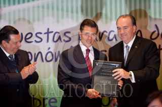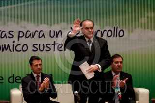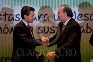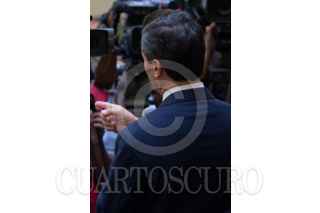 MÉXICO, D.F., 25NOVIEMBRE2011.- Enrique Peña Nieto, aspirante a la Presidencia de la República por el PRI, atiende a los medios de comunicación al término de un compromiso con la Concanaco. FOTO: MOISÉS PABLO/CUARTOSCURO.COM