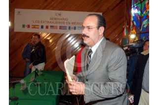 México D.F., 08DIC2004.- El subsecretario de población, migración y de asuntos religiosos de la secretaria de Gobernación, Armando Salinas Torre, inauguro el 4to Seminario de Extranjeros en México. En la imagen lo acompaña Magdalena Corral. FOTO: Ignacio González/CUARTOSCURO.COM