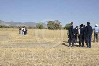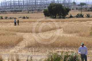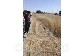 ZUMPANGO, ESTADO DE MÉXICO, 25NOVIEMBRE2011.- Pobladores de Hueytoxtla en el municipio de Zumpango se alertaron ante la aparición de algunas figuras como una estrella y algunos círculos en los sembradíos de cebada. del ejido conocido como Tierra Blanca. Aprovechando de esta situación el encargado de dicho predio se dedico a cobrar hasta 2,500.00 pesos por permitir hacer fotografías o vídeos. FOTO: LUIS CARBAYO/CUARTOSCURO.COM