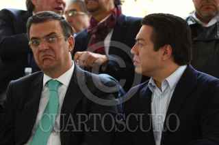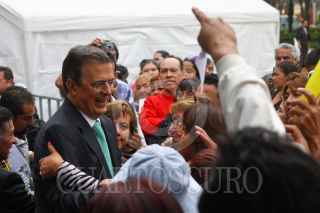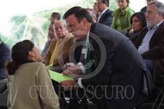 MÉXICO, D.F., 26NOVIEMBRE2011.-Marcelo Ebrard Casaubón, Jefe de Gobierno, asistió el 2do. Informe de gestión del diputado federal Emilio Serrano, en la explanada de la delegación Iztacalco. FOTO: MOISÉS PABLO/CUARTOSCURO.COM