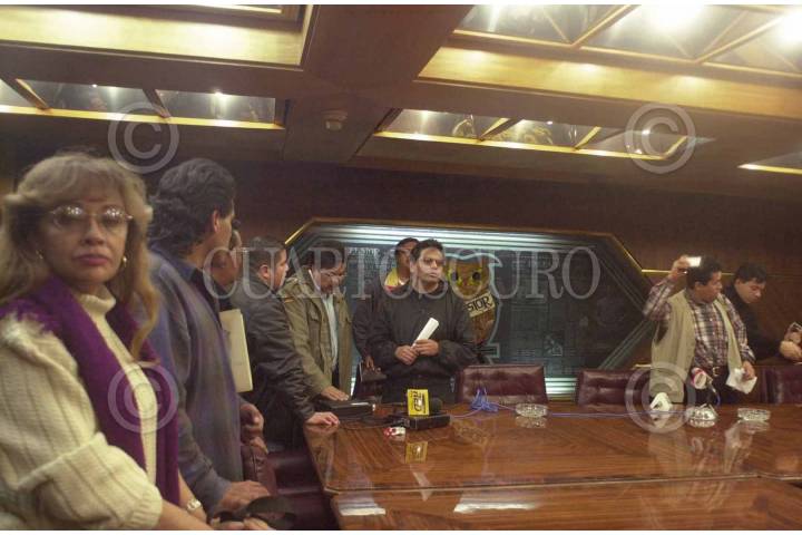 A seis mese de haber sido suspendidos los trabajadores de Excelsior, firmaron un convenio con con las autoridades de la cooperativa del mismo périodico, en el cual se comprometen a levantar la suspensión y reintegrarlos a sus respectivos puestos después de la asamblea del 27 del presente mes. En la imagen el director del periódico Armando Sepulveda (izq). FOTO: Susana Navarrete/CUARTOSCURO.COM