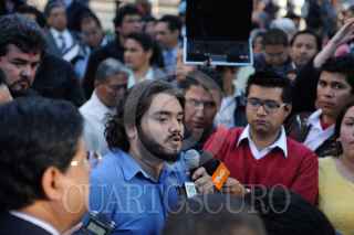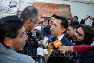 MÉXICO, D.F., 29NOVIEMBRE2011.- Manifestantes de diversas organizaciones que firmaron la demanda contra el Presidente de México Felipe Calderón ante La Haya por crímenes de lesa humanidad, se presentaron a las instalaciones de la PGR, con la intención de "entregarse" ante las autoridades correspondientes. En el lugar fueron atendidos por el subprocurador de esta dependencia que se retiro mediante abucheos. FOTO: LUIS CARBAYO/CUARTOSCURO.COM