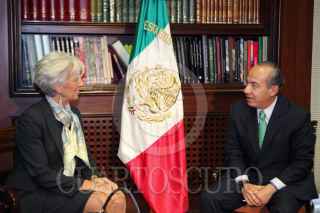 MÉXICO, D.F., 30NOVIEMBRE2011.- Felipe Calderón Hinojosa, presidente de México, recibió en la Residencia Oficial de Los Pinos a Christine Lagarde, directora gerente del Fondo Monetario Internacional. FOTO: ARIEL GUITIERREZ/CUARTOSCURO.COM