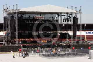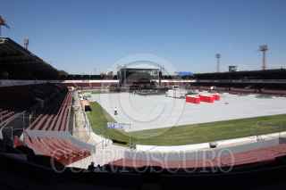 GUADALAJARA, JALISCO, 30NOVIEMBRE2011.- Trabajadores detalles para el escenario del concierto que ofrecerá la Artista Britney Spears, en el estadio 3 de Marzo, en Zapopan. FOTO: FERNANDO CARRANZA GARCIA/CUARTOSCURO.COM