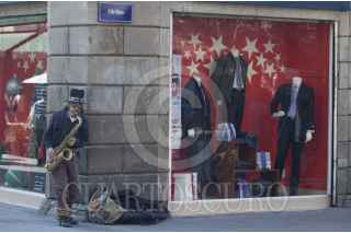MÉXICO, D.F., 30NOVIEMBRE2011.- Debido al incremento del desempleo en el país, un hombre de la tercera edad se ve en la necesidad de ganarse unas monedas tocando su saxofón sobre las calles del Centro Histórico. FOTO: RODOLFO ANGULO/CUARTOSCURO.COM