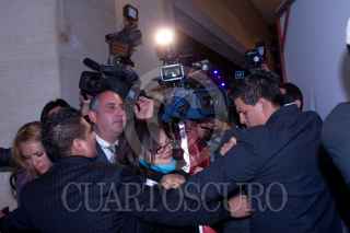 MÉXICO, D.F., 30NOVIEMBRE2011.- La mala organización provocó que decenas de periodistas e invitados se empujaran con elementos de seguridad al intentar obtener una imagen de la playmate Pamela Anderson, en la fiesta de fin de año de la revista Playboy, realizada en una disco de Polanco. FOTO: ISAAC ESQUIVEL/CUARTOSCURO.COM