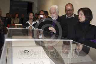 PUEBLA, PUEBLA, 01DICIEMBRE2011.- El escritor y cineasta chileno Alejandro Jodorowsky visitó la ciudad de Puebla para presentar su película Spiritual Journey y visitar la exposición Resisting the Present 2000-2012 que incluye textos del escritor y que se exhibe en el Museo Amparo de la ciudad. FOTO: HILDA RIOS/CUARTOSCURO.COM