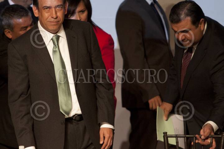 MÉXICO, D.F., 02DICIEMBRE2011.- Humberto Moreira, presentó su renuncia ante el Consejo Político del PRI. Esto tras largos meses en los que se exhibió una serie de irregularidades en una serie de créditos obtenidos por el gobierno coahuilense en la gestión del Moreira. El profesor Moreira indico que deja el partido por que no permitirá que se le haga daño por lo que denomino una "Guerra Mediática". En su lugar tomó protesta Cristina Díaz ante un auditorio Plutarco Elías Calles del CEN del PRI. FOTO: MOISÉS PABLO/CUARTOSCURO.COM
